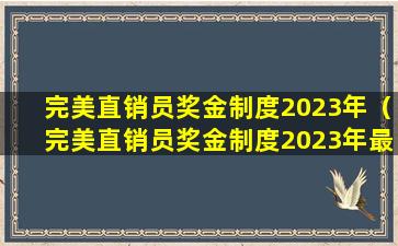 关于“完美直销员奖金制度2023年最新”的信息,由于我无法访问最新的数据和具体的直销公司政策,因此无法提供确切的奖金制度详情。直销公司的奖金制度通常会根据公司的政策、市场状况以及法律法规的变化而调整。