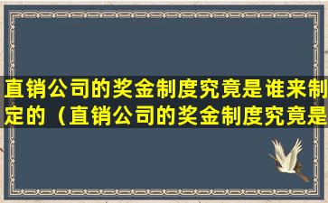 直销公司的奖金制度通常是由公司内部的管理层或者专门的薪酬福利部门制定的。这个过程可能涉及以下几个方面: