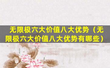 请注意,上述内容是基于一般性的描述,具体的“六大价值八大优势”可能会根据无限极的官方资料和市场策略有所不同。如果需要最新的信息,建议直接咨询无限极公司或访问其官方网站获取。