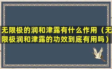 无限极润和津露是无限极公司生产的一款产品,它通常被宣传为具有滋润喉咙、改善声音嘶哑等功效。关于其功效的评价,需要基于科学研究和用户反馈来进行。