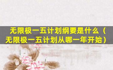 无限极(Infinitus)是一家中国的健康产品公司,隶属于香港李锦记集团。关于“无限极一五计划纲要”,这可能是指无限极在某个五年计划期间的发展战略或规划。由于信息更新和具体计划的差异,我无法提供确切的“一五计划纲要”内容。
