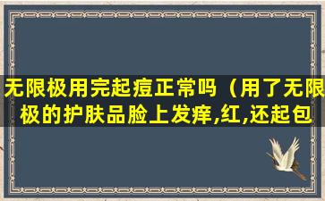 如果您在使用无限极的护肤品后出现脸部发痒、红肿、起包等症状,这可能是皮肤对产品中的某些成分产生了过敏反应。过敏反应是免疫系统对通常无害的物质(在这种情况下可能是护肤品中的某种成分)的过度反应。