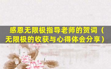 无限极是一家中国的直销公司,主要从事健康产品的销售。如果您是无限极的合作伙伴或客户,并且想要表达对指导老师的感谢,您可以撰写一封感谢信或者发送一段感谢的话语。以下是一个简单的贺词示例,您可以根据自己的情况进行调整: