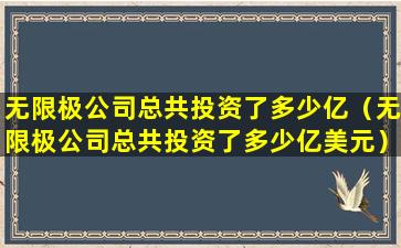 无限极作为一家私人公司,其财务信息并不像上市公司那样公开透明。因此,关于其投资总额的具体信息可能不会对外公布。如果需要了解无限极的投资情况,建议直接咨询公司或查看其官方发布的相关新闻和公告,以获取最准确的信息。