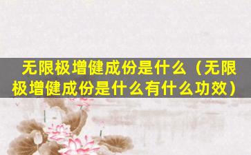 “无限极增健”是无限极(Infinitus)公司生产的一款保健品,其主要成份通常包括多种植物提取物、维生素、矿物质等,旨在帮助增强身体免疫力、改善健康状况。具体成份可能会根据产品版本和配方的不同而有所差异。