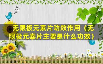 无限极(Infinitus)是一家中国的保健品公司,其产品包括多种健康食品和营养补充品。关于“无限极元素片”的功效作用,由于我无法访问最新的数据和产品信息,因此无法提供具体的产品功效描述。