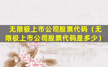 无限极(Infinitus)是一家总部位于中国的健康产品公司,隶属于香港李锦记集团。截至我所知的信息,无限极并不是一家上市公司,因此它没有股票代码。如果无限极或其母公司李锦记集团在未来决定上市,那么它们将会在相应的证券交易所获得股票代码。请注意,我的信息可能不是最新的,建议您查看最新的财经新闻或访问相关证券交易所的官方网站以获取最新信息。