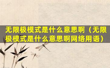 "无限极模式"这个网络用语并不是一个标准的词汇,它可能是由网友创造的一个新词或者是对某个现象的描述。在网络用语中,"无限极"可能指的是某种行为或者状态达到了极端或者没有限制的程度。例如,在游戏中,"无限极模式"可能指的是一种没有限制、可以无限进行的游戏模式。