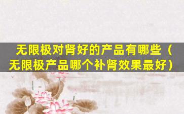 在无限极的产品线中,可能会有一些产品声称对肾脏有益,例如含有特定草药成分的产品,这些成分可能被认为有助于肾脏健康。但是,这些产品的效果和安全性应该基于科学研究和临床试验来评估。