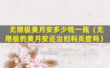 无限极(Infinitus)是中国著名的保健品品牌,其产品线涵盖了健康食品、个人护理品等多个领域。关于“美月安”这一产品,可能是指无限极的一款针对女性健康的产品。由于产品信息可能会随时间更新,具体的价格和产品详情需要通过官方渠道或者授权的销售点来获取最准确的信息。