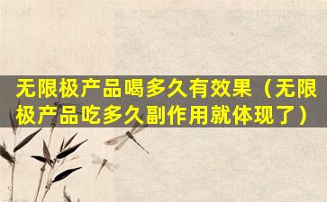 为了了解无限极特定产品的效果和使用时间,建议咨询专业的医疗人员或直接联系无限极公司获取更详细的信息。同时,购买和使用任何保健品之前,都应该仔细阅读产品标签和说明书,并在必要时咨询医生或专业人士。