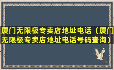 很抱歉,我无法提供具体的商业机构如“无限极专卖店”的地址和电话号码,因为这些信息可能会随时间而变化,并且需要实时更新。无限极是一家知名的健康产品公司,其专卖店可能遍布中国各地,包括厦门。