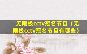 请注意,节目的冠名情况可能会随着时间的推移而发生变化,具体的冠名节目列表可能需要通过官方渠道或最新的媒体报道来确认。如果您需要最新的信息,建议直接查询无限极或CCTV的官方公告。