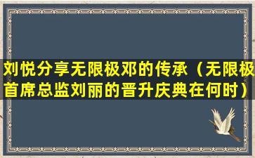 无限极(Infinitus)是一家中国的直销公司,隶属于香港李锦记集团,主要从事健康产品的研发、生产和销售。关于“刘悦分享无限极邓的传承”这一表述,由于信息不明确,无法提供具体的分析或评论。