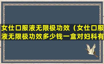 无限极是一家中国的直销公司,主要销售健康产品。关于其产品“女仕口服液”的功效,应当查阅该产品在中国国家药品监督管理局的注册信息,以及官方发布的说明书和宣传材料。消费者在选择使用任何健康产品时,应当谨慎,并且最好在医生或专业人士的指导下使用。