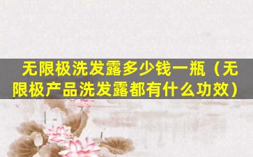 无限极(Infinitus)是一家中国的健康产品公司,隶属于李锦记健康产品集团。无限极提供多种健康和美容产品,包括洗发水。无限极洗发精的价格可能会因地区、销售渠道和促销活动而有所不同。