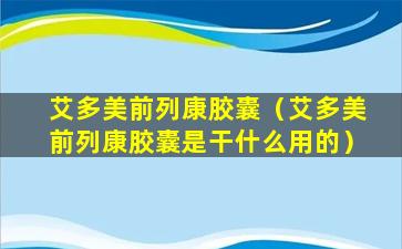 关于“艾多美前列康胶囊”的功效和作用,我无法提供具体的信息,因为这可能是一个特定地区或市场上销售的特定产品,而且没有足够的信息来验证其成分和效果。在中国,任何药品或保健品的功效和作用都需要经过国家药品监督管理局的批准,并且其宣传材料必须符合相关法律法规。