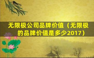 截至我所知的信息,无限极(Infinitus)是一家中国的健康产品公司,隶属于香港李锦记集团。无限极主要从事中草药健康产品的研发、生产和销售。由于品牌价值是一个动态变化的指标,并且需要通过专业的品牌评估机构进行评估,因此我无法提供2017年无限极品牌价值的具体数字。