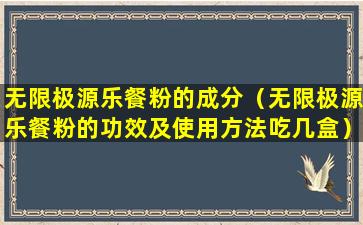 关于“无限极源乐餐粉”的功效及使用方法,我无法提供具体的信息,因为这需要基于产品的官方说明和科学研究。无限极是一家中国的直销公司,其产品包括健康食品、个人护理品等。如果您想了解“无限极源乐餐粉”的功效和使用方法,建议您直接咨询无限极的官方渠道或查看产品包装上的说明。