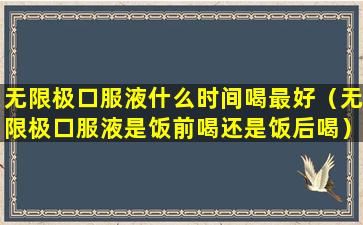 无限极口服液是一种保健品,其服用时间通常建议在饭后,因为饭后服用可以减少对胃的刺激,同时也有助于吸收。具体服用时间最好根据产品说明书或医生的建议来确定。