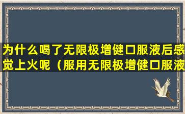 无限极增健口服液是一种保健品,其成分和功效可能会因人而异。如果您在服用后感觉上火,这可能是由于个人体质、服用剂量、服用时间或其他生活习惯等因素导致的。上火是中医术语,通常指的是身体出现的一些热性症状,如口干、咽痛、便秘等。