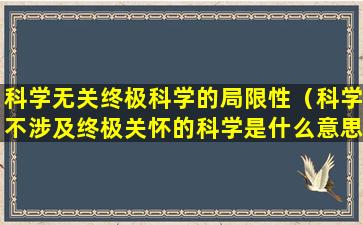 “科学不涉及终极关怀”的意思是,科学作为一种研究自然界现象和规律的知识体系,其主要关注的是事实、数据、实验和理论的构建,而不直接探讨或解决人类存在的根本问题,如生命的意义、宇宙的起源、道德的本质等所谓的“终极关怀”问题。科学方法强调实证和逻辑推理,通常不涉及宗教、哲学或个人信仰层面的探讨。因此,科学在处理这些问题时往往保持中立,不提供直接的答案或指导。