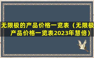 关于“无限极产品价格一览表2023年慧倍”的信息,我无法提供具体的价格列表,因为这需要从无限极公司的官方渠道或者授权的销售渠道获取最新的价格信息。无限极是一家知名的健康产品公司,其产品线涵盖了营养保健品、个人护理品等多个领域。