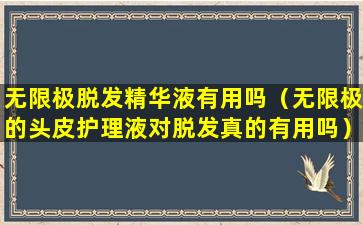 无限极是中国的一个直销公司,主要销售健康食品、个人护理品等产品。关于“无限极脱发精华液”是否有用,这需要从几个方面来考虑: