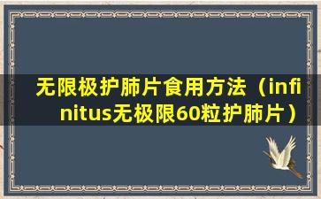 如果您提到的“infinitus无极限60粒护肺片”是一款在中国市场上销售的产品,建议您查阅国家药品监督管理局的官方网站或联系相关部门,以确认该产品是否具有合法的注册信息和批准文号。同时,购买任何保健品时,应选择正规渠道,并注意查看产品标签上的生产日期、有效期、生产厂家等信息,确保产品的安全性和有效性。
