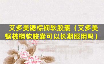艾多美锯棕榈软胶囊是一种含有锯棕榈提取物的保健品,通常被用于支持前列腺健康。锯棕榈是一种原产于北美洲的植物,其果实提取物被认为可以帮助缓解前列腺肥大症状,如尿频、尿急等。