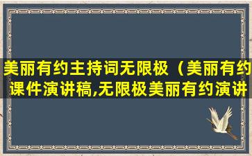 您好!关于“美丽有约主持词无限极”,这可能是指某个活动或节目的主持词,其中“无限极”可能是指该活动的赞助商或主题。由于信息有限,我无法提供具体的主持词内容。如果您需要撰写或获取相关的主持词,建议您可以参考以下几个步骤: