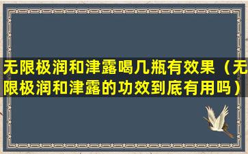 无限极润和津露是一种保健品,其效果因人而异,且需要一定的时间和持续的使用才能显现。通常,保健品的推荐使用方法是按照产品说明书或医生的建议进行,而不是简单地通过“喝几瓶”来衡量其效果。