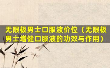 无限极(Infinitus)是一家中国的健康产品公司,提供多种保健品,包括针对不同人群的口服液。无限极男士口服液是专为男性设计的保健品,旨在帮助男性维持健康和活力。