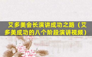 截至我的知识更新日期(2023年),我无法提供具体的视频内容,包括“艾多美成功的八个阶段演讲视频”,因为这可能是一个特定的、非公开的视频资源,或者是一个需要特定权限才能访问的内容。如果这个视频是公开的,并且可以在互联网上找到,我建议您通过搜索引擎或视频分享平台(如YouTube)进行查找。