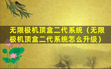 截至我的知识更新日期(2023年),"无限极机顶盒二代系统"并不是一个广为人知的产品或系统。无限极(Infinitus)是一家以生产和销售健康产品为主的公司,而机顶盒通常指的是一种可以连接到电视并提供额外功能的设备,比如接收数字电视信号、流媒体服务、游戏等。