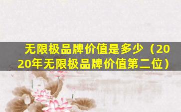 截至我所知的信息,无限极是一家中国的直销公司,主要从事健康产品的销售。关于“2020年无限极品牌价值第二位”的说法,我无法提供确切的信息,因为这需要具体的来源和评估标准。品牌价值的评估通常由专业的品牌评估机构进行,如Interbrand、Brand Finance等,他们会根据品牌的财务表现、市场地位、品牌影响力等多个维度进行综合评估。