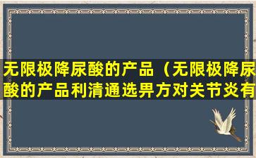 无限极(Infinitus)是一家中国的保健品公司,提供多种健康产品,包括针对特定健康问题的产品。关于您提到的“利清通选畀方”,这可能是无限极的一款产品,旨在帮助降低尿酸水平。