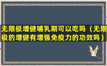 无限极增健是一种保健品,其主要成分包括多种植物提取物,旨在帮助增强免疫力和改善身体健康。对于哺乳期的妇女来说,是否可以食用这类保健品需要特别谨慎。