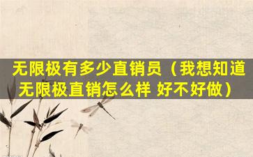 如果您想了解更多关于无限极直销员的具体信息,建议直接联系无限极公司或访问其官方网站获取最新的数据和信息。同时,需要注意的是,直销行业在不同国家和地区可能有不同的法规和要求,因此在参与之前了解相关的法律法规是非常重要的。