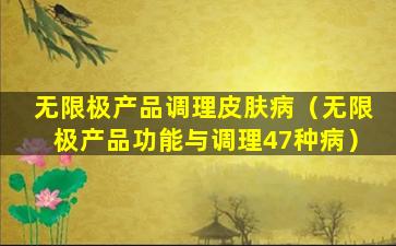 无限极是一家中国的保健品公司,其产品主要涉及健康食品、个人护理品等。关于使用无限极产品调理皮肤病的说法,需要谨慎对待。