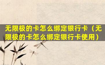 无限极是一家提供健康产品和服务的企业,如果您提到的“无限极的卡”是指无限极的会员卡或者是与无限极合作的某种支付卡,通常这类卡的绑定银行卡使用流程如下: