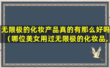 无限极(Infinitus)是一家中国的健康产品公司,隶属于李锦记健康产品集团。它提供多种健康食品、个人护理产品等。关于无限极的化妆品,由于我无法获取最新的用户反馈和产品评价,因此无法提供具体的使用体验。