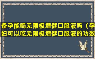 无限极增健口服液是一种保健品,其主要成分和功效可能会因产品而异。在备孕期间,建议您在服用任何保健品或药物之前,先咨询医生或专业的医疗人员。