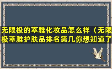 无限极(Infinitus)是中国的一个健康产品品牌,隶属于香港李锦记集团。萃雅系列是无限极推出的一个化妆品系列,主要针对肌肤护理,包括洁面、爽肤水、乳液、面霜、精华等多种产品。