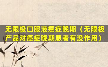 无限极是一家中国的保健品公司,其产品主要集中在健康食品、个人护理和家居护理等领域。关于无限极产品对癌症晚期患者是否有作用,需要明确以下几点: