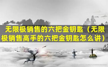 无限极是一家中国的直销公司,主要销售健康产品。关于“无限极销售的六把金钥匙”,这可能是指该公司在销售和市场推广中采用的一些策略或方法。具体的“六把金钥匙”内容并不是公开的标准信息,因此无法提供确切的解释。