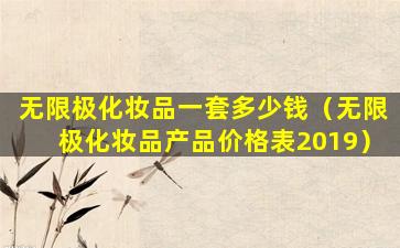 为了获取2019年的无限极化妆品产品价格表,您可能需要查找历史数据或联系无限极的客服部门。请注意,由于时间已经过去,2019年的价格可能已经不再适用,因此最新的价格信息应以无限极当前提供的数据为准。