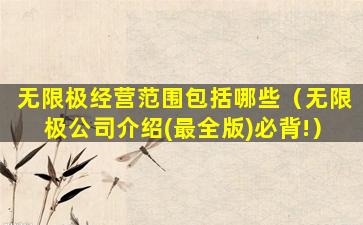 无限极(Infinitus)是一家中国的健康产品公司,隶属于香港李锦记集团。无限极主要经营范围包括: