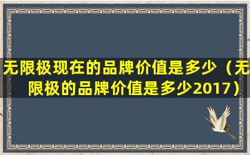 截至我的知识更新日期(2023年),无限极(Infinitus)是一家专注于中草药健康产品的公司,隶属于香港李锦记集团。无限极的品牌价值并没有一个官方的、固定的数值,因为品牌价值通常需要通过专业的品牌评估机构进行评估,并且会随着市场环境、公司业绩、品牌影响力等因素的变化而变化。