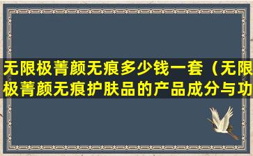 如果您想了解“无限极菁颜无痕护肤品”的具体成分和功效,建议直接查看产品包装上的成分列表,或者访问无限极的官方网站和官方授权的销售渠道获取最准确的信息。同时,购买和使用任何护肤品前,建议先进行皮肤测试,以确保产品适合自己的肤质,避免过敏等不良反应。